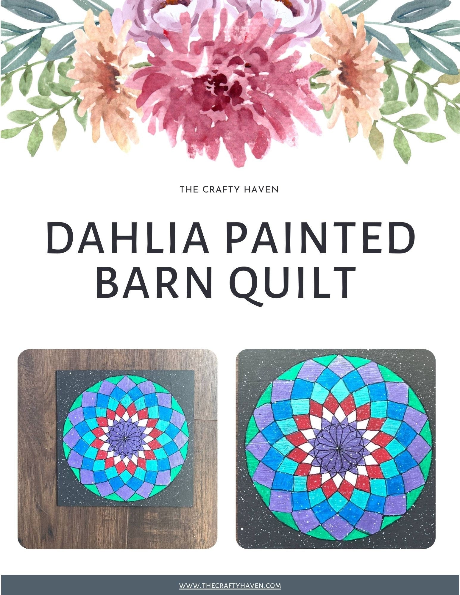 Dahlia Painted Wood barn Quilt Digital SVG PDF Pattern Bundle