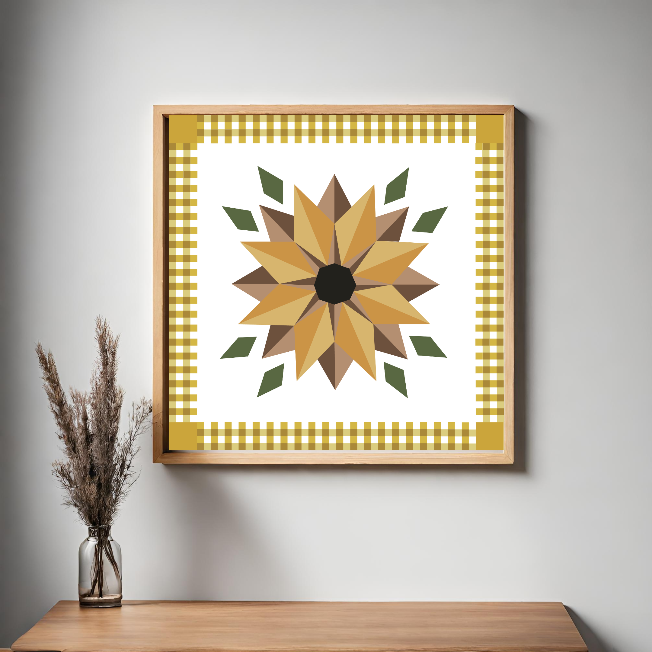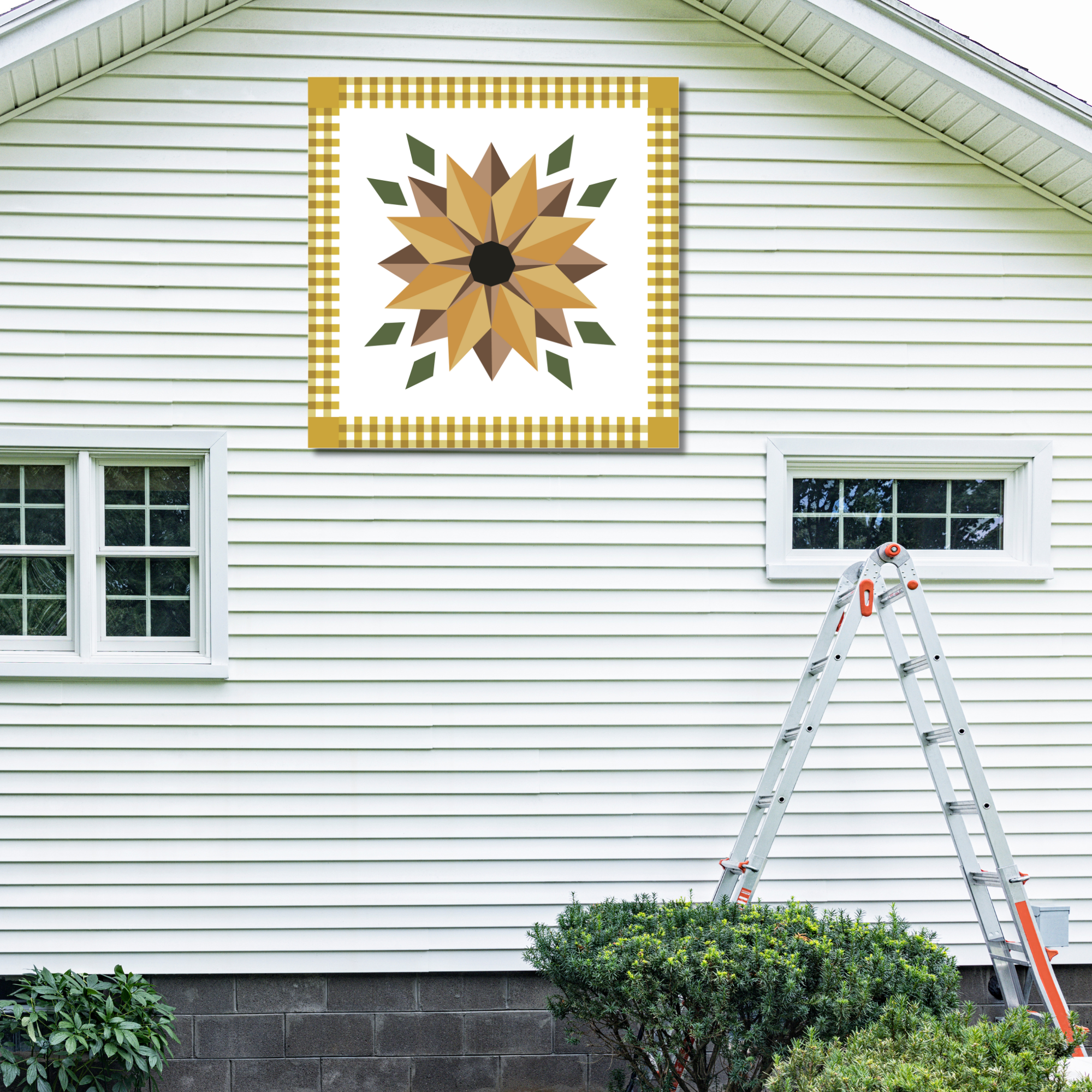 Golden Sunflower Barn Quilt Pattern - Digital Download | DIY Farmhouse Quilt Block | PDF Guide in 12x12", 24x24", & 48x48"