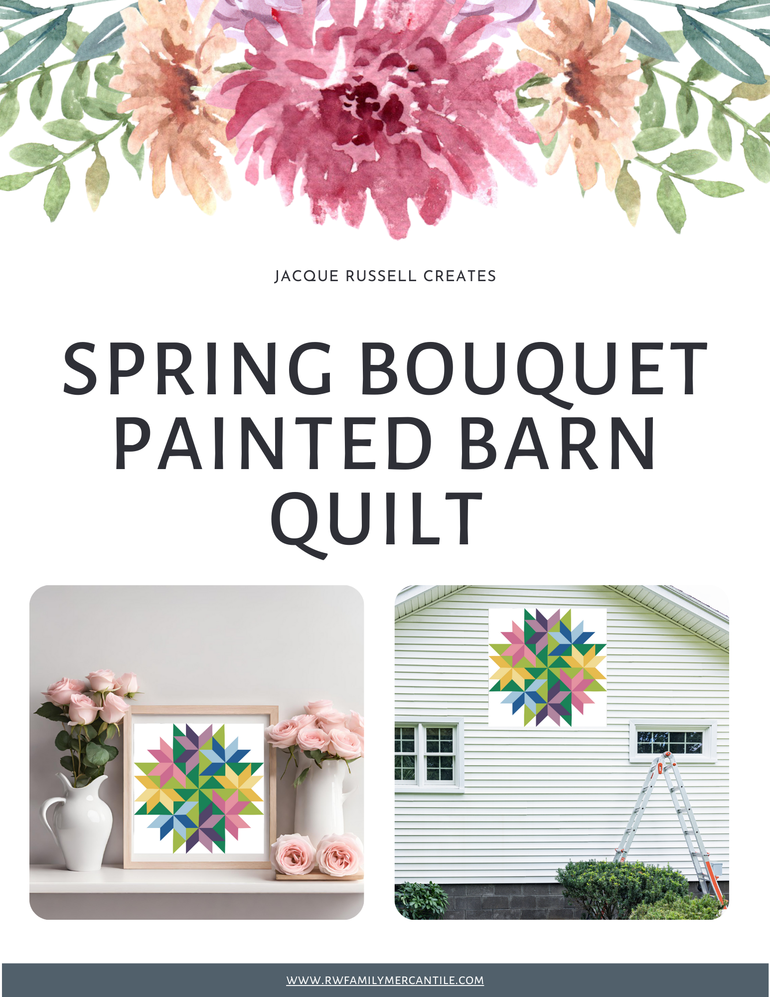 Spring Bouquet Quilt Block Barn Quilt - Digital Download, Floral DIY Wall Art Pattern, Spring Home Decor, Quilting Project, Instant PDF
