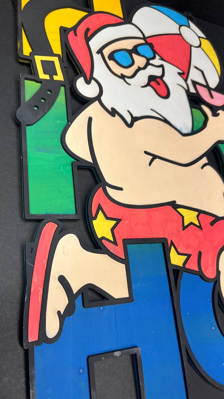 Bring a touch of tropical cheer to your holiday décor with our Beach Santa Wall Art & Door Hanger! This festive design features a jolly Santa enjoying the beach, with HO HO HO playfully displayed in the background. Perfect for those who love a coastal Christmas, this unique piece blends holiday spirit with seaside charm.