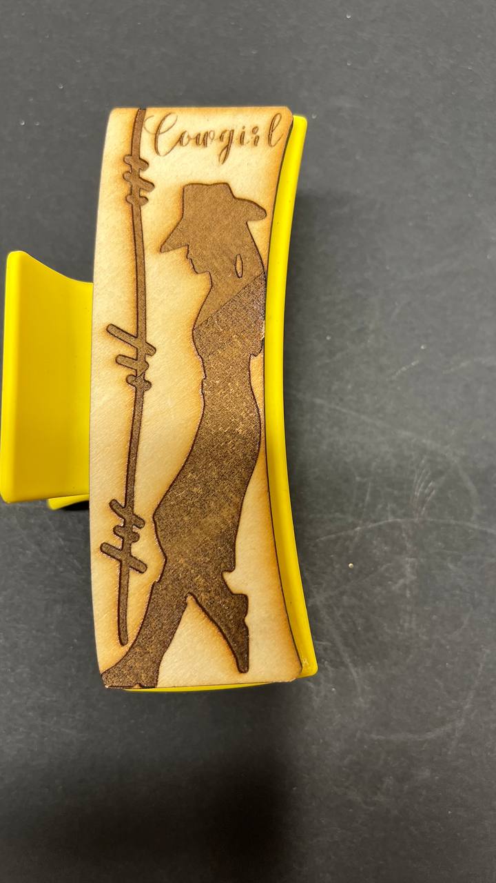 Cowgirl Hair Claw Clip – Western Wooden Hair Accessory with Cowgirl Silhouette & Barbed Wire Fence