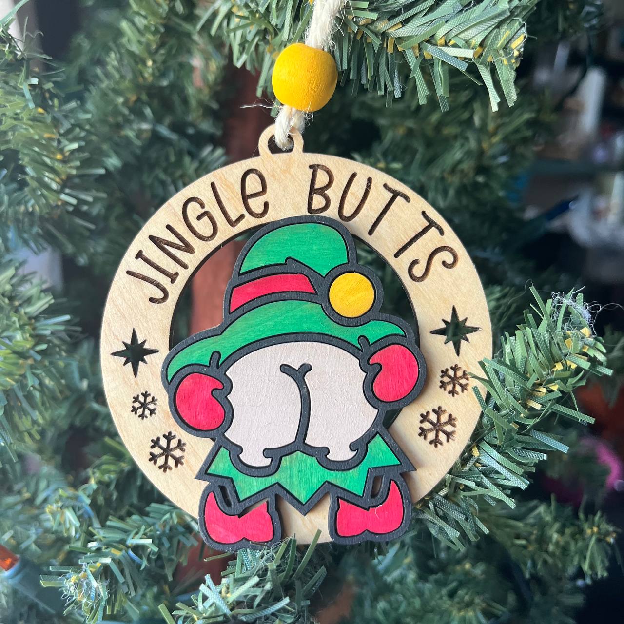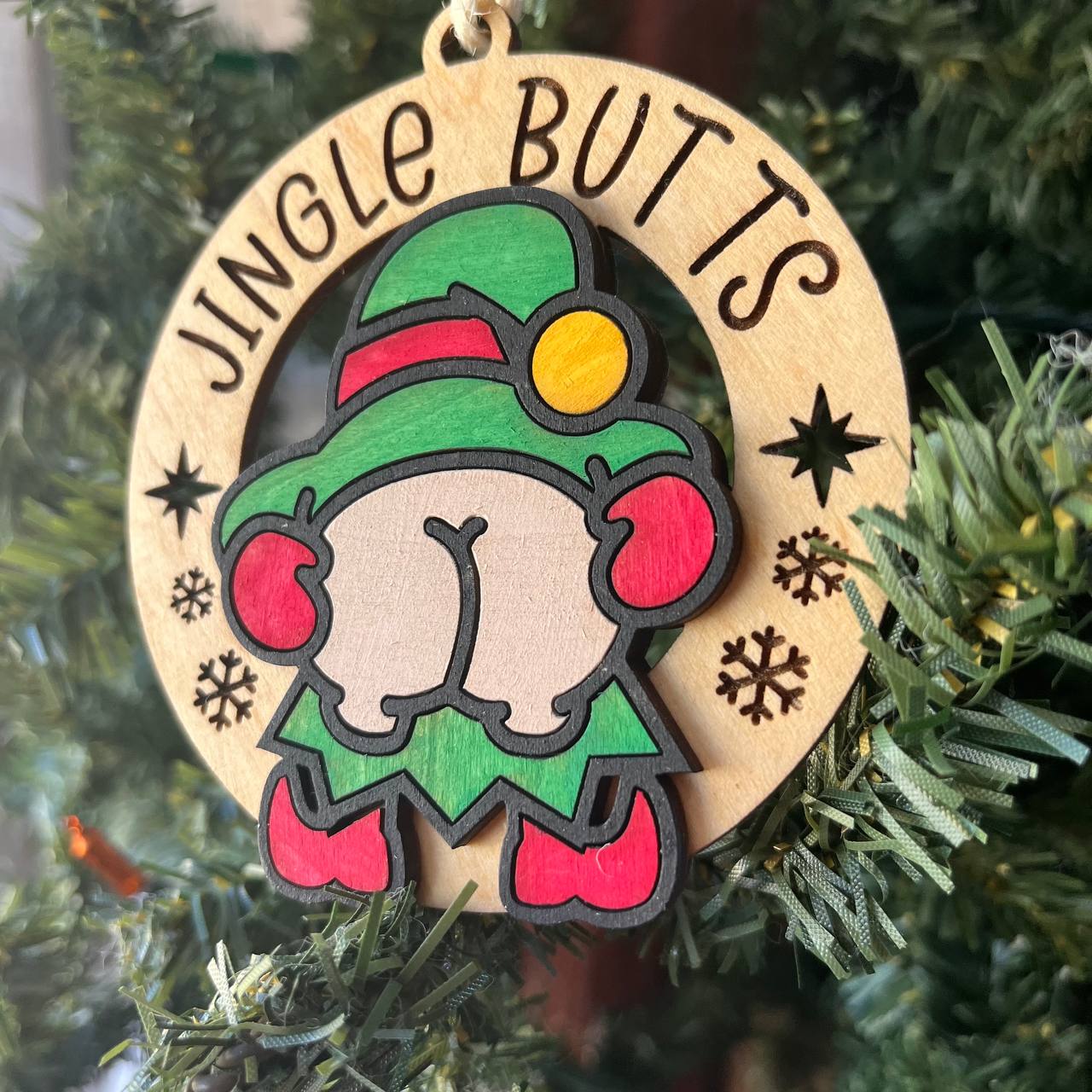 Bring the holiday sass straight from the North Pole with these hilarious Elf Butt Ornaments. Featuring two cheeky designs – one reads “Merry KissMyAss” and the other “Jingle Butts” – these hand-painted elves are mooning their way into Christmas legend.