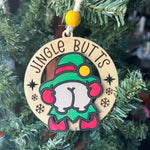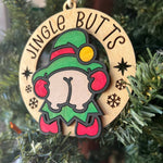 Funny Elf Butt Ornaments – “Merry KissMyAss” & “Jingle Butts” – 3.25" Round Christmas Tree Humor