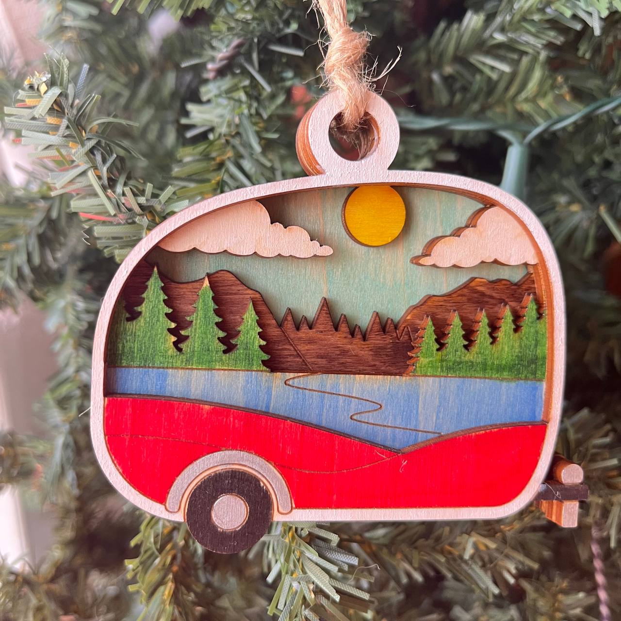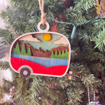 Rustic Camper Christmas Ornament - Hand-Painted 4-Layer Wooden Travel Trailer Decor
