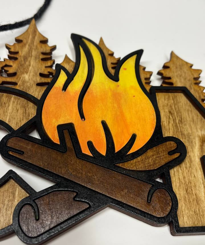 Hand-Painted Wooden "CAMP" Sign – Rustic Campfire & Marshmallow Decor