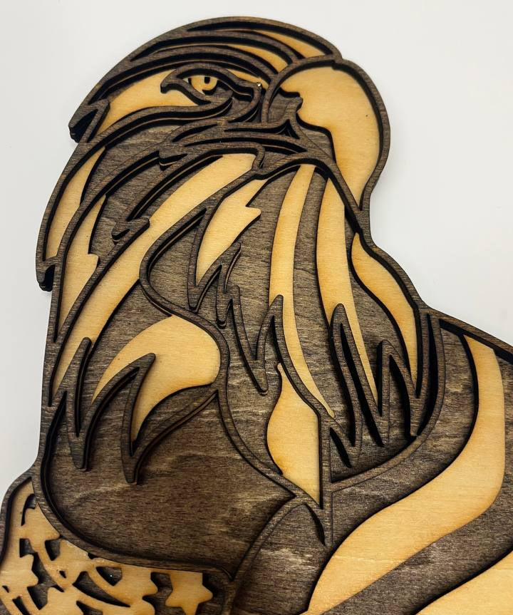 Patriotic Eagle Head with USA Flag – 2-Layered Wooden Wall Art