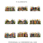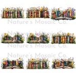 "Book Therapy Clipart, Watercolor Books PNG, Bookshelf Row Clip Art, Book Lover Aesthetic, Reading Sublimation, Transparent PNG Bundle"