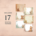 Digital Pastel Bear with Flowers Junk Journal Paper 17 Pages 12x12 Inch 300 DPI Printable Scrapbook Paper for Journaling and Crafts