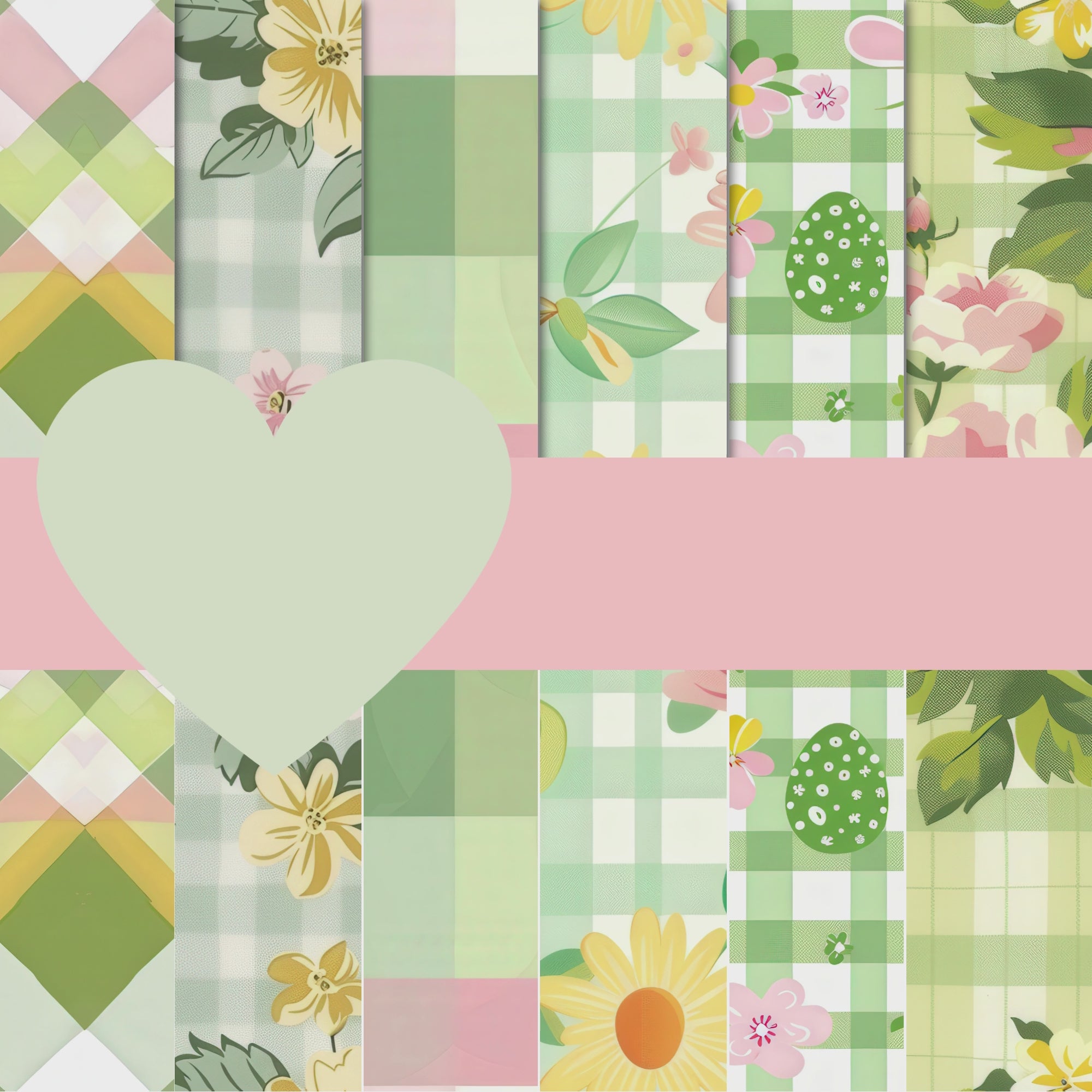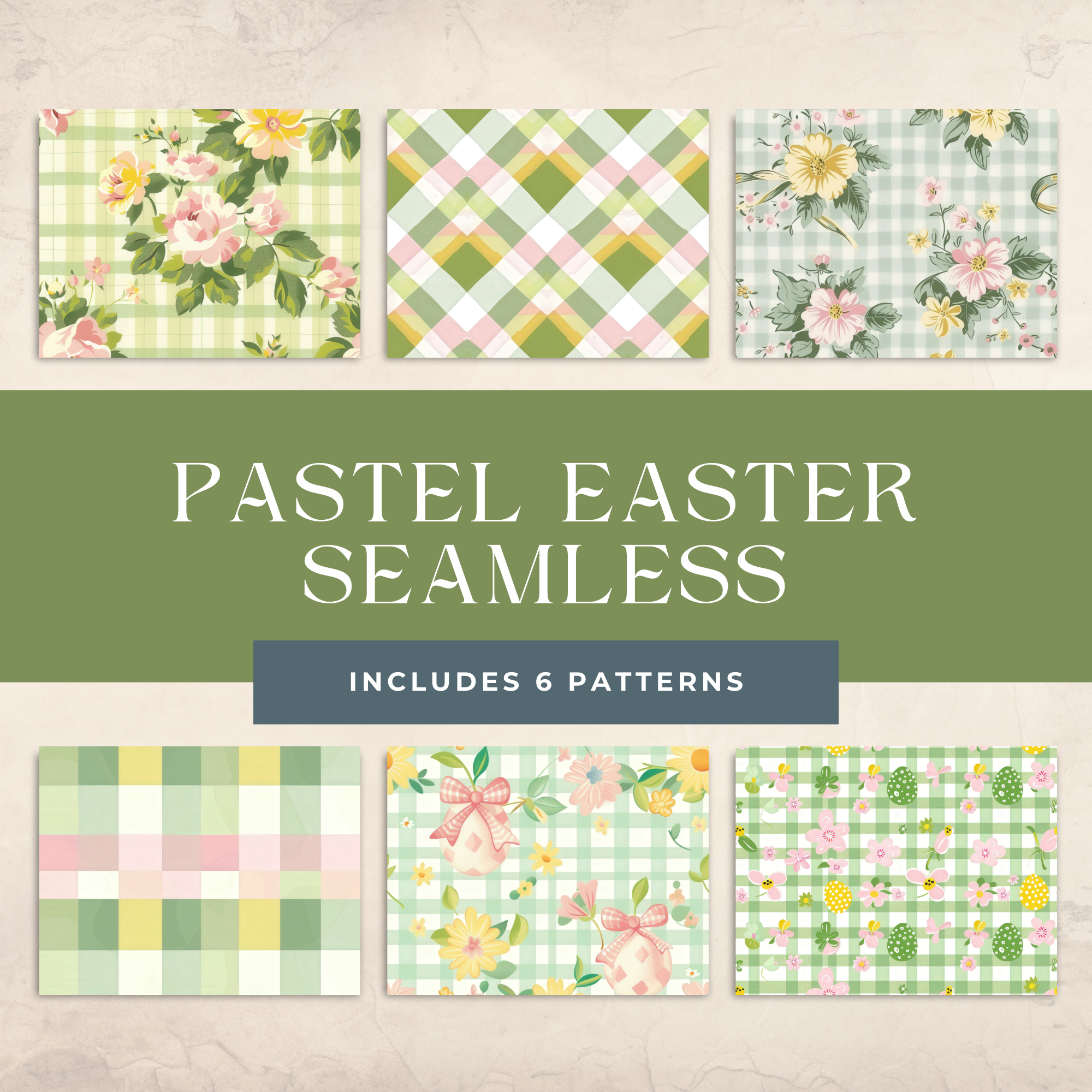 Pastel Easter Seamless Patterns 300 DPI Digital Paper for Fabric Wallpaper Scrapbooking Gingham Floral Bows Spring Printable Design