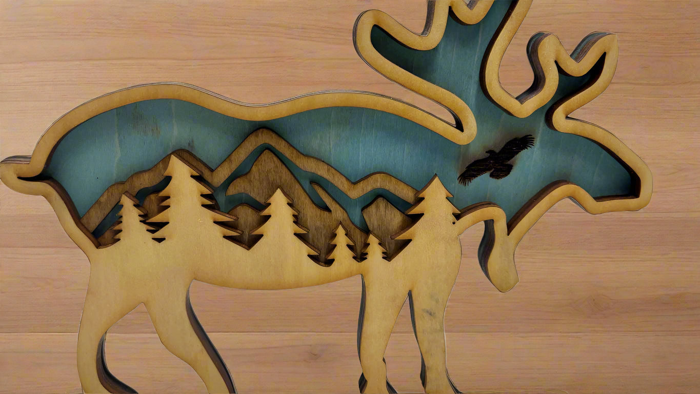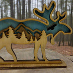 Hand-Painted 3-Layer Moose with Mountain Scene Wood Décor