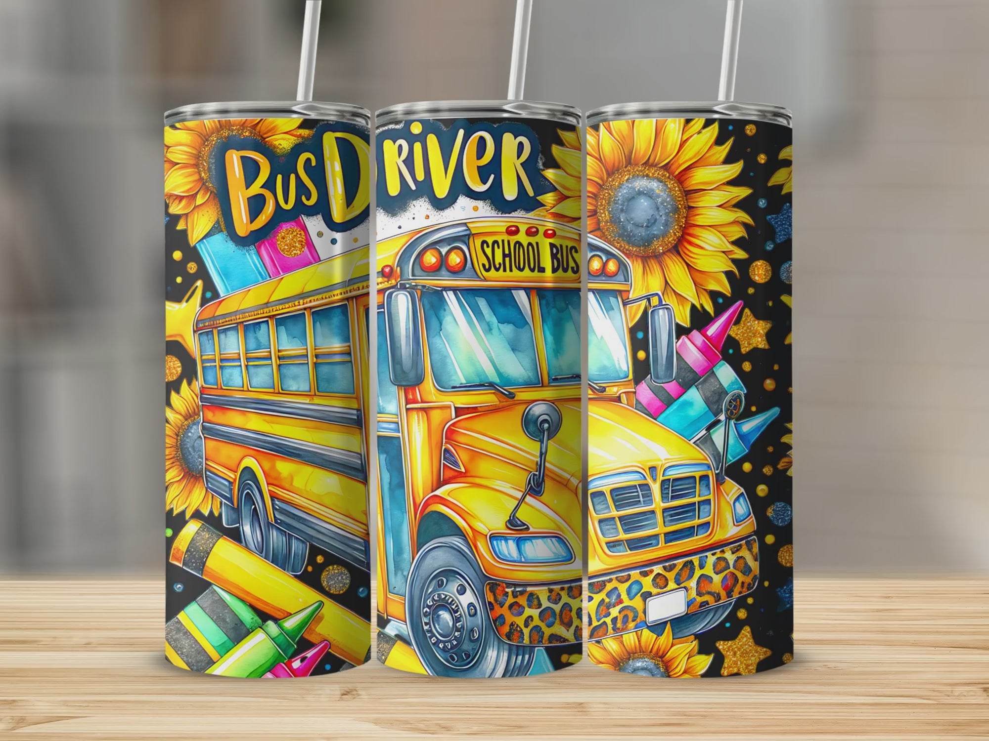 ✔ 1 PNG File – High-quality School Bus Driver Tumbler Wrap