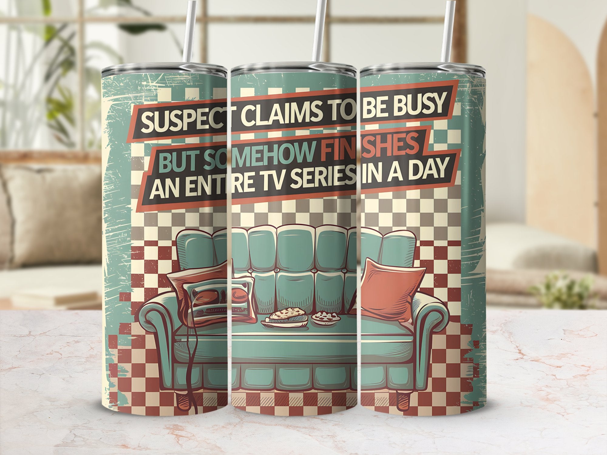 Suspect Claims to Be Busy But Finishes a TV Series 20oz Tumbler Wrap, Funny Binge-Watching Sublimation Design, Digital Download PNG