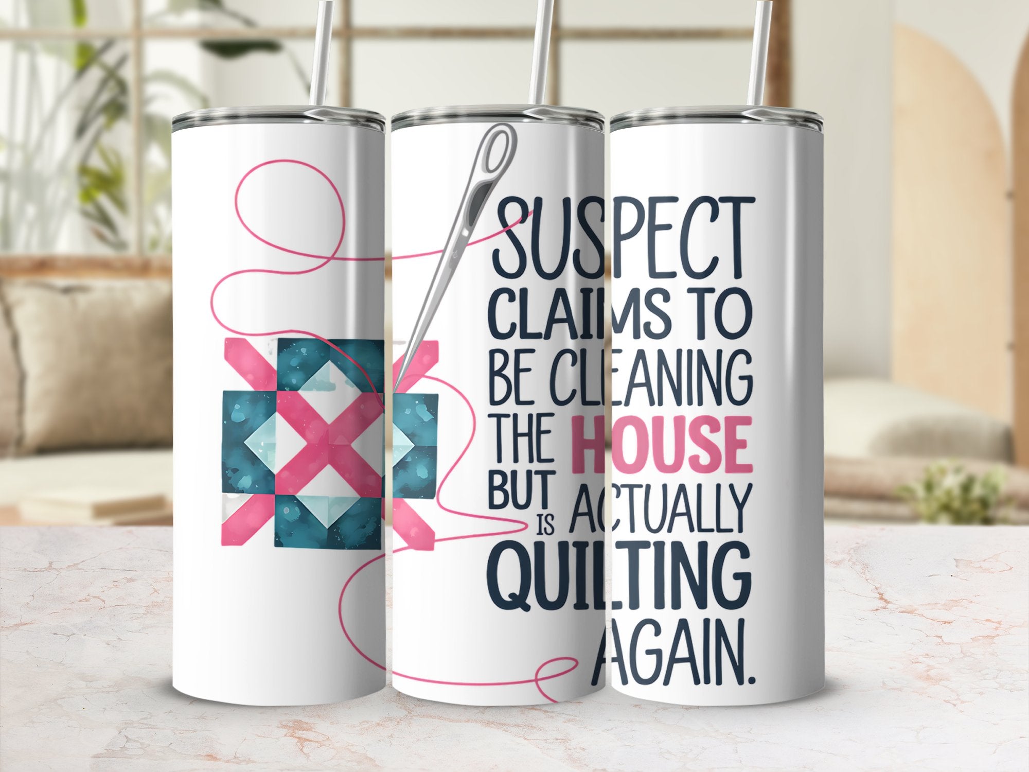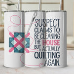 Suspect Claims to Be Cleaning but Is Actually Quilting 20oz Tumbler Wrap PNG, Funny Quilter Sublimation Design, Sewing Digital Download
