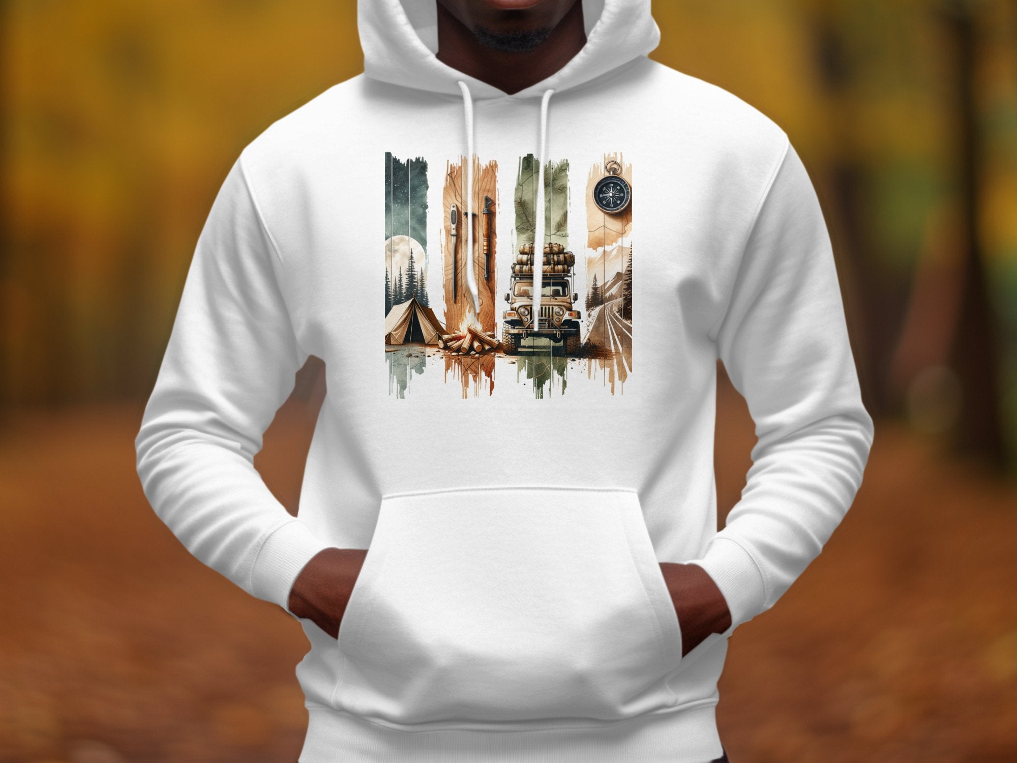 Vintage Jeep Mountain Graphic Hoodie, Retro Off-Road Adventure Pullover, Nature Scenery Print Sweatshirt, Unisex Outdoor Apparel
